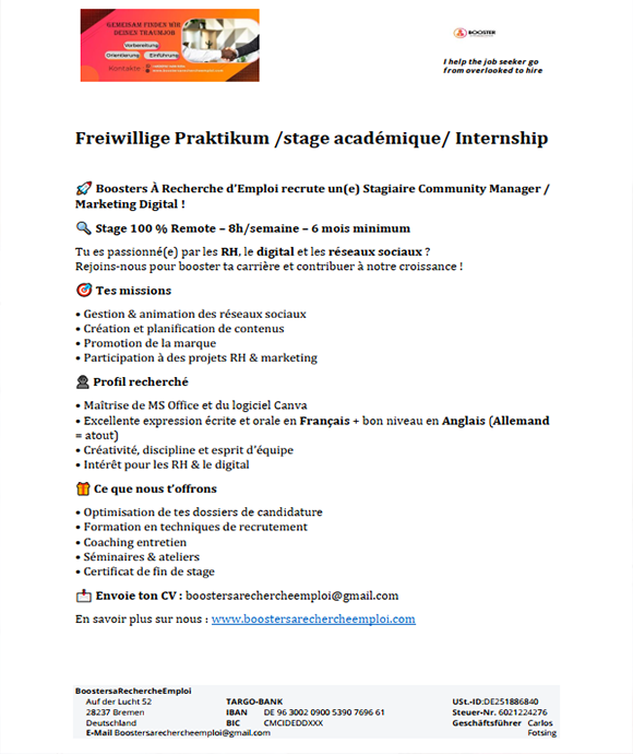 Vous êtes passionné(e) par les ressources humaines, le digital et les réseaux sociaux ? Ce stage académique vous offre l’opportunité de développer des compétences concrètes en communication digitale tout en contribuant activement à des projets RH et marketing. Encadré(e) par une équipe expérimentée, vous travaillerez sur des missions réelles, dans un environnement professionnel, flexible et 100 % à distance.